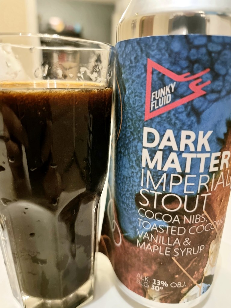 Depuis le passage à la canette pour toutes leurs bières (ou presque), la très talentueuse brasserie de Funky Fluid ne propose quasiment que des classiques. La Dark Matter n’échappe pas à la règle. On a vraiment là tous les codes du Pastry Stout qui sont respectés à la lettre. Le nez est celui du dessert au chocolat. En vrac, on retrouve du cacao sucré, de la vanille et une forte présence de noix de coco toastée. Cette pâtisserie liquide est également présente lors de l’entrée en bouche. Le chocolat doux se mélange avec le sirop d’érable, la noix de coco et la vanille. On est gâté niveau saveurs. Surtout que ces dernières restent en bouche un certain temps, offrant une finale longue à souhait. Le seul petit bémol vient du côté fort sucré du breuvage. Cacao sucré, noix de coco, vanille liquide et sirop, le mélange n’est peut-être pas conseillé pour un diabétique.