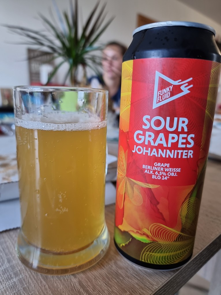 Une nouvelle création de Funky Fluid qui tente de nous faire découvrir un mix zythologique entre la Berliner Weisse acide et le moût de raisin. Ce dernier est bien présent au nez. On sent le caractère âpre des peaux de raisins blancs. Cette saveur est un peu inhabituelle mais pas mauvaise pour autant. Le corps est également plus dans l’âpre que dans l’acide, ce qui est dommageable pour une Berliner. D’autant que le côté moût de raisin est relativement bien amené et offre des goûts un peu inédits. Pas mal pour une Sour mais manque quand même d’équilibre global.