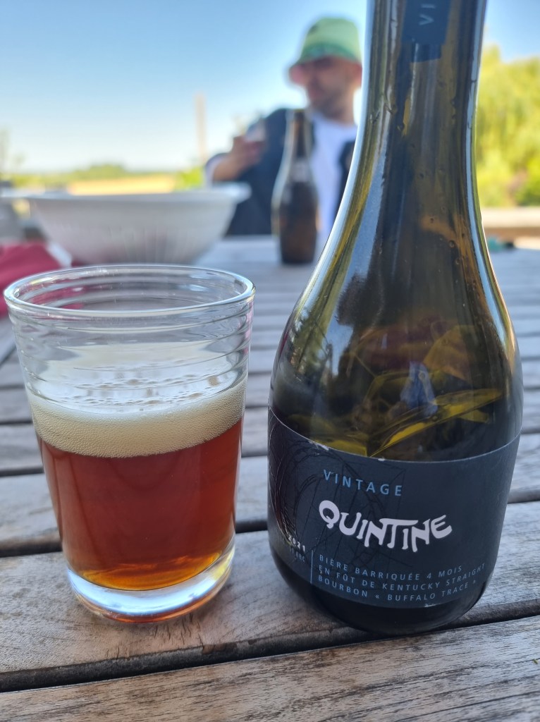 Effluves de bourbon léger. Les brassins auraient été mis en maturation en fûts ayant contenu du Buffalo Trace. Mais les arômes ne sont pas prononcés. En bouche, la Quintine qui a servi de base est plus douce, moins amère et plus enrobée. C’est plus sucré, ça passe bien et la drinkability est bien maîtrisée pour une bière d’un tel ABV.
